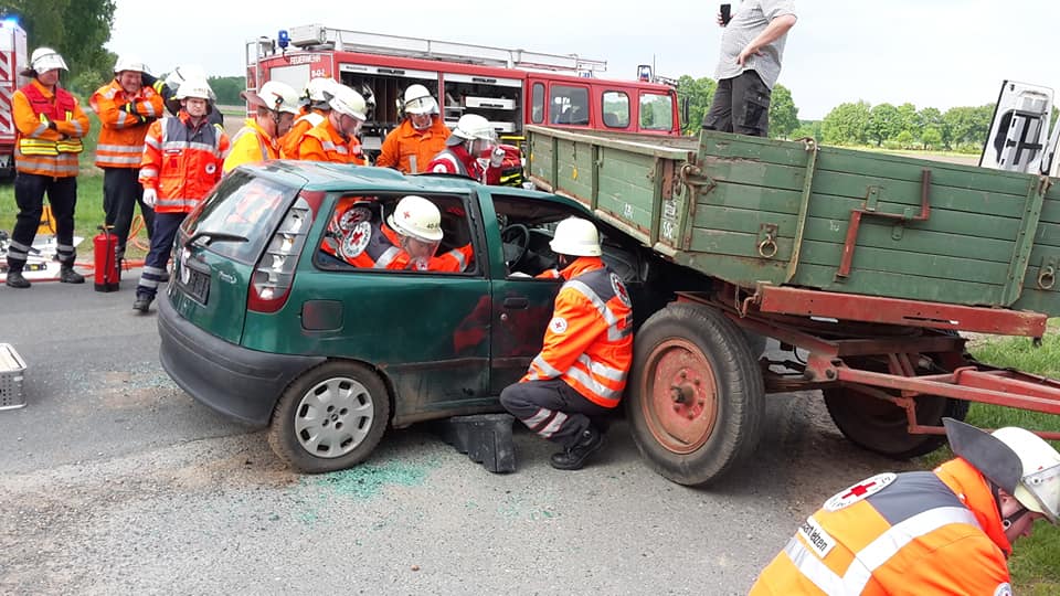 Am vergangenen Freitag wurden wir zu einer Alarmübung zwischen Wrestedt und Kl. Bollensen alarmiert. Laut Alarmmeldung sollte ein PKW unter einen Anhänger gefahren sein. Dies bestätigte sich auch beim Eintreffen der ersten Kräfte. Zudem war noch die DRK Bereitschaft aus Uelzen mit dabei, die die Patienten versorgt und somit für eine realistische Übung gesorgt hat.