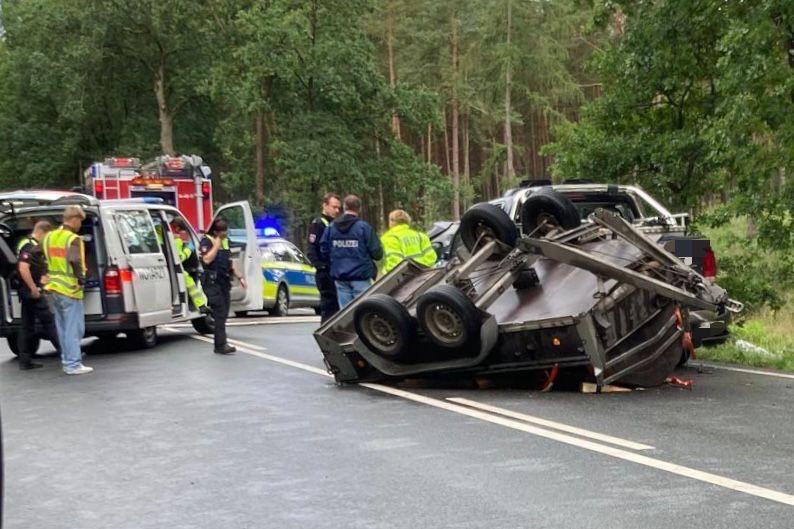 Die B4 blieb für die Rettungs-, Bergungs- und Unfallaufnahmearbeiten in beiden Fahrtrichtungen vollgesperrt.